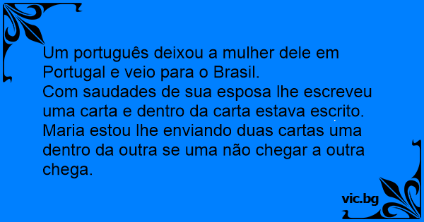 Com saudades de sua esposa lhe escreveu uma carta e dentro da carta estava escrito.