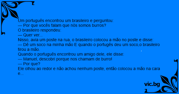 — Dê um soco na minha mão E quando o portugês deu um soco,o brasileiro tirou a mão.
