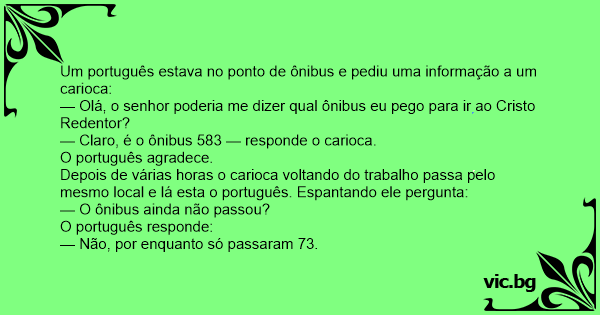 Um português estava no ponto de ônibus e pediu uma informação a um carioca: