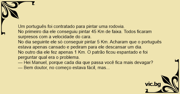 — Hei Manuel, porque cada dia que passa você fiса mais devagar?