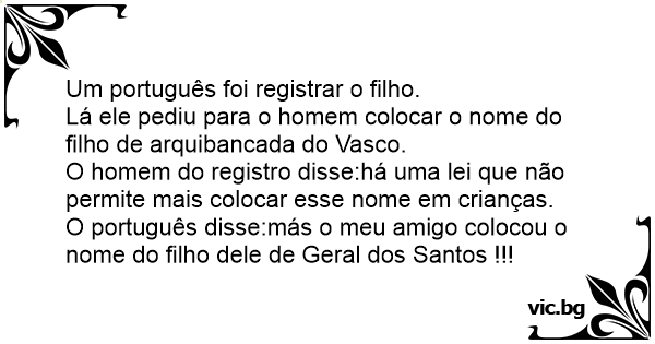 O português disse:más o meu amigo colocou o nome do filho dele de Geral dos Santos !!!