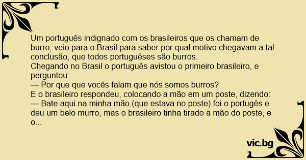 — Manuel, Manuel, descobri por que os brasileiros nos chamam de burros.