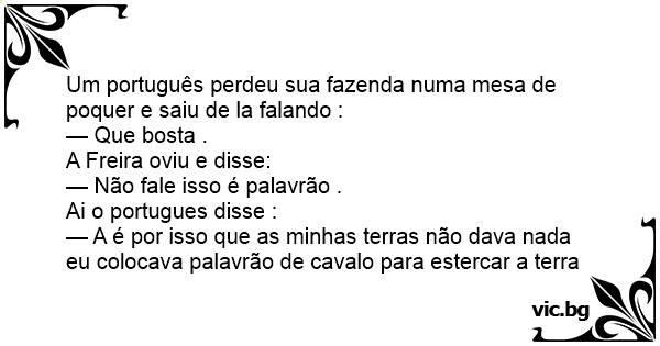 Um português perdeu sua fazenda numa mesa de poquer e saiu de la falando :