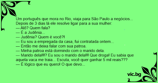 Um português que mora no Rio, viaja para São Paulo a negócios... Depois de 3 dias lá ele resolve ligar para a sua mulher: