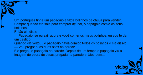 Um português tinha um papagaio e fazia bolinhos de chuva para vender.