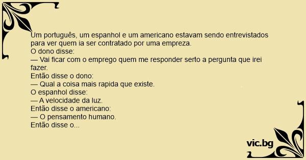 Um português, um espanhol e um americano estavam sendo entrevistados para ver quem ia ser contratado por uma empreza.