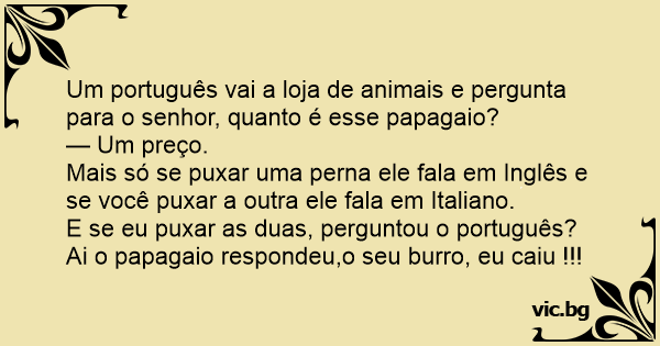 Um português vai a loja de animais e pergunta para o senhor, quanto é esse papagaio?