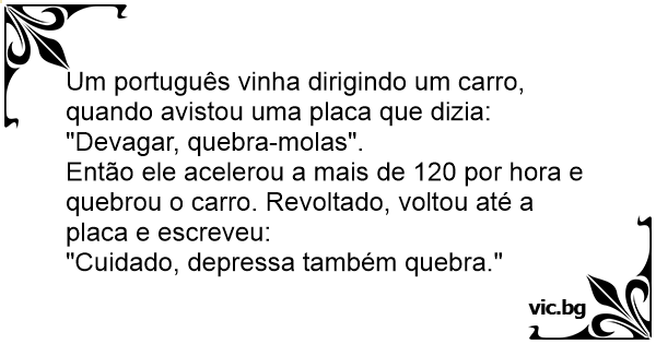 Um português vinha dirigindo um carro, quando avistou uma placa que dizia: