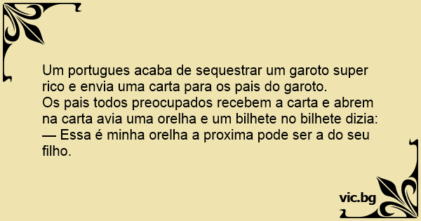 Um portugues acaba de sequestrar um garoto super rico e envia uma carta para os pais do garoto.