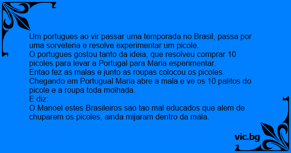 Um portugues ao vir passar uma temporada no Brasil, passa por uma sorveteria e resolve experimentar um picole.