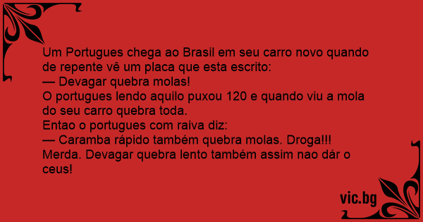 Um Portugues chega ao Brasil em seu carro novo quando de repente vê um placa que esta escrito: