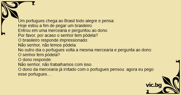O dono da mercearia já irritado com o portugues pensou: agora eu pego esse portugues.