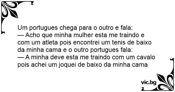 — Acho que minha mulher esta me traindo e com um atleta pois encontrei um tenis de baixo da minha cama e o outro portugues fala: