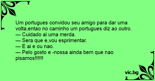 Um portugues convidou seu amigo para dar uma volta,entao no caminho um portugues diz ao outro.