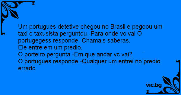 Um portugues detetive chegou no Brasil e pegoou um taxi o taxusista perguntou -Para onde vc vai O portugegess responde -Chamais saberas.