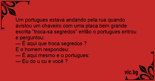 Um portugues estava andando pela rua quando avistou um chaveiro com uma placa bem grande escrita "troca-sa segredos" então o portugues entrou e perguntou: