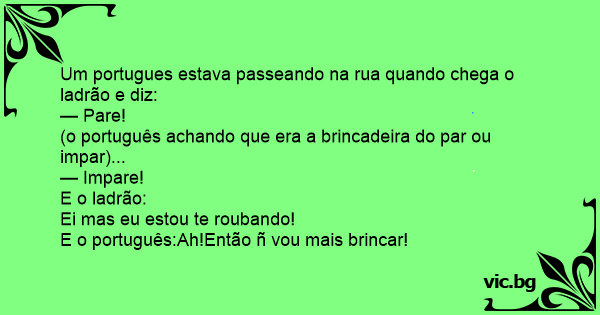 Um portugues estava passeando na rua quando chega o ladrão e diz:
