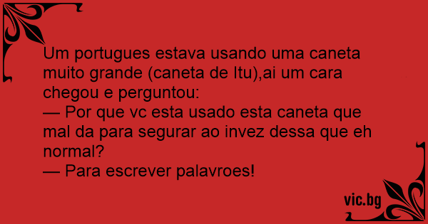 Um portugues estava usando uma caneta muito grande (caneta de Itu),ai um cara chegou e perguntou: