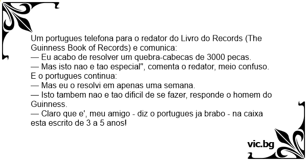 — Claro que e', meu amigo - diz o portugues ja brabo - na caixa esta escrito de 3 a 5 anos!