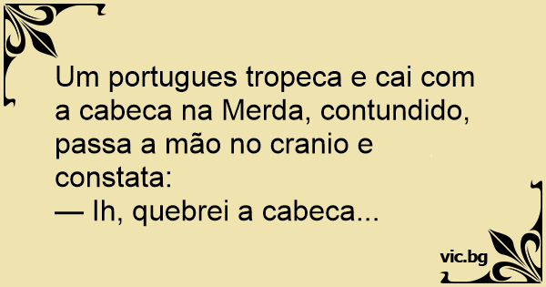 Um portugues tropeca e cai com a cabeca na Меrdа, contundido, passa a mão no cranio e constata: