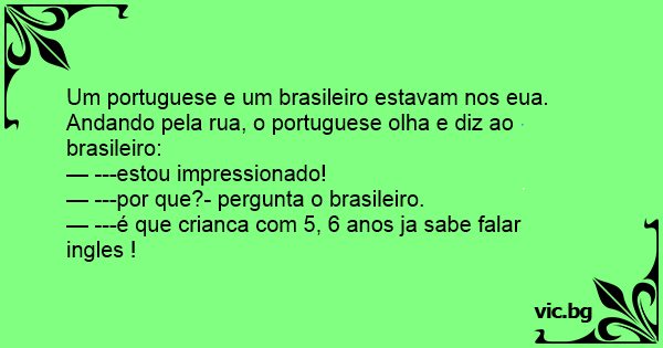 Andando pela rua, o portuguese olha e diz ao brasileiro: