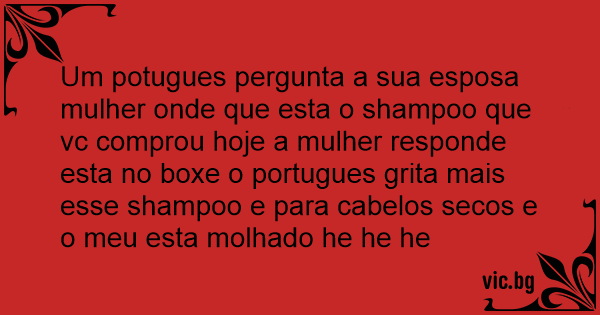 Um potugues pergunta a sua esposa mulher onde que esta o shampoo que vc comprou hoje a mulher responde esta no boxe o portugues grita mais esse shampoo e para cabelos secos e o meu esta molhado he he he