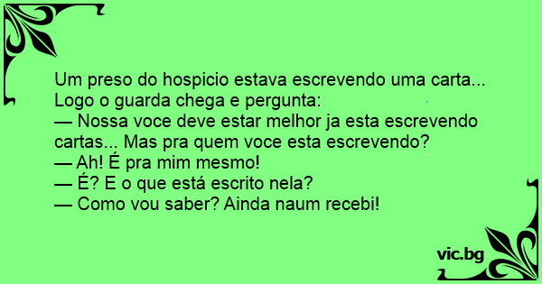 Um preso do hospicio estava escrevendo uma carta... Logo o guarda chega e pergunta: