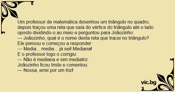 — Joãozinho, qual é o nome desta reta que tracei no triângulo?