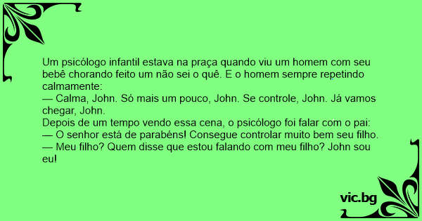 Um psicólogo infantil estava na praça quando viu um homem com seu bebê chorando feito um não sei o quê. E o homem sempre repetindo calmamente: