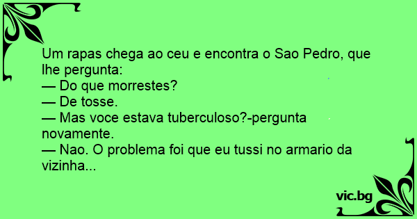 Um rapas chega ao ceu e encontra o Sao Pedro, que lhe pergunta: