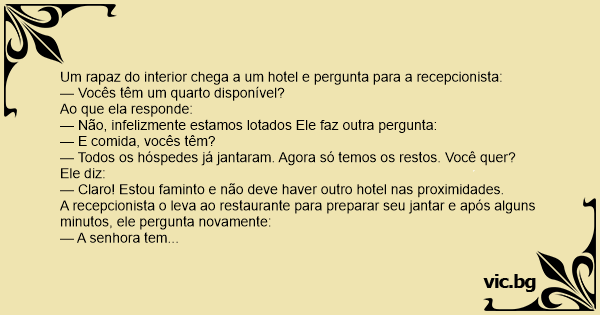 Um rapaz do interior chega a um hotel e pergunta para a recepcionista: