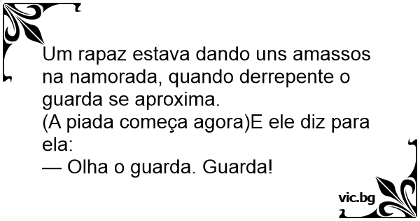 Um rapaz estava dando uns amassos na namorada, quando derrepente o guarda se aproxima.