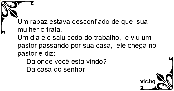 Um dia ele saiu cedo do trabalho, e viu um pastor passando por sua casa, ele chega no pastor e diz: