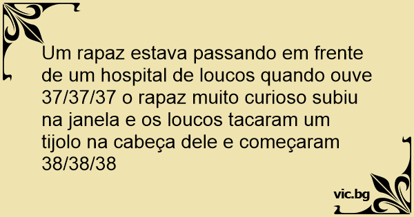 Um rapaz estava passando em frente de um hospital de loucos quando ouve 37/37/37 o rapaz muito curioso subiu na janela e os loucos tacaram um tijolo na cabeça dele e começaram 38/38/38