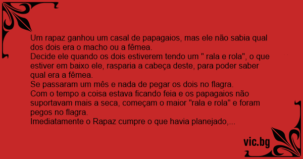 Um rapaz ganhou um casal de papagaios, mas ele não sabia qual dos dois era o macho ou a fêmea.