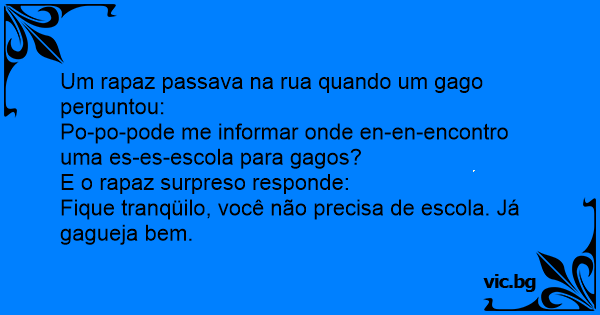 Um rapaz passava na rua quando um gago perguntou: