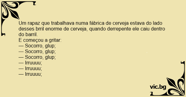 Um rapaz que trabalhava numa fábrica de cerveja estava do lado desses brril enorme de cerveja, quando derrepente ele caiu dentro do barril.