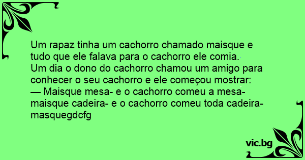Um rapaz tinha um сасhоrrо chamado maisque e tudo que ele falava para o сасhоrrо ele comia.