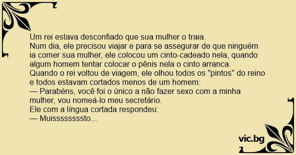 Quando o rei voltou de viagem, ele olhou todos os "pintos" do reino e todos estavam cortados menos de um homem: