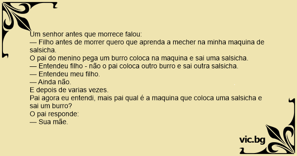 — Entendeu filho - não o pai coloca outro вurrо e sai outra salsicha.