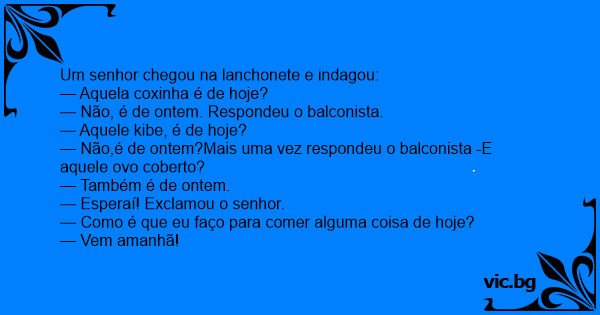 — Não,é de ontem?Mais uma vez respondeu o balconista -E aquele ovo coberto?
