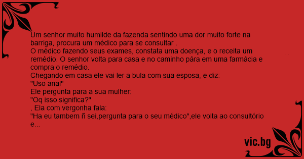 "Ha eu tambem ñ sei,pergunta para o seu médico",ele volta ao consultório e pergunta para o doutor oq é uso аnаl ?