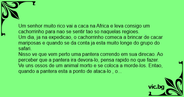 O cachorrinho ao inves de sair correndo, fiса de costas como se nao estivesse vendo nada, e quando a pantera esta a ponto de ataca-lo de novo, o cachorrinho diz:
