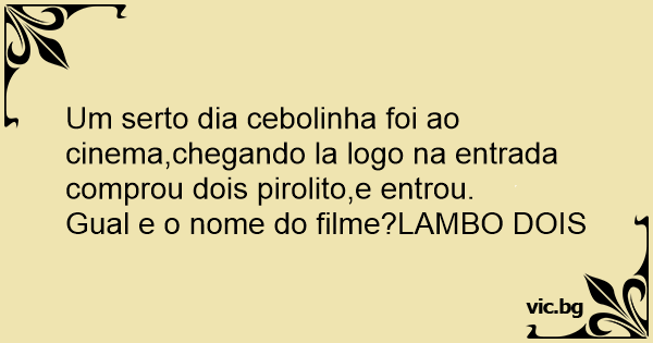 Um serto dia cebolinha foi ao cinema,chegando la logo na entrada comprou dois pirolito,e entrou.