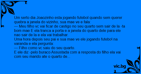 Um serto dia Joaozinho esta jogando futebol quando sem querer quebra a janela do vizinho, sua mae ve e fala: