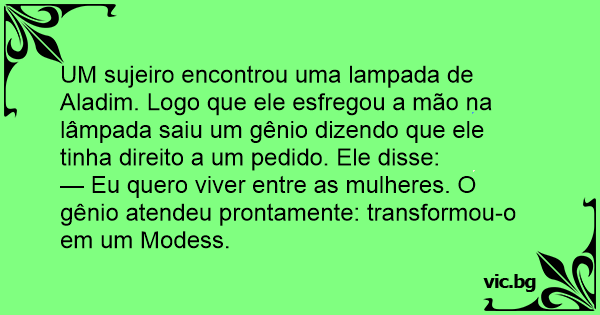 — Eu quero viver entre as mulheres. O gênio atendeu prontamente: transformou-o em um Modess.