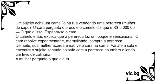 O camelo entao explica que a perereca faz um boquete sensacional. O cara resolve experimentar e, maravilhado, compra a perereca.