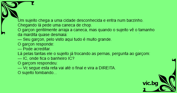 Lá pelas tantas ele o sujeito já trocando as pernas, pergunta ao garçom: