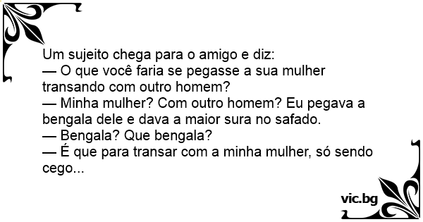 — É que para transar com a minha mulher, só sendo cego...