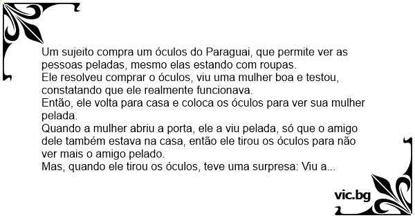Um sujeito compra um óculos do Paraguai, que permite ver as pessoas peladas, mesmo elas estando com roupas.